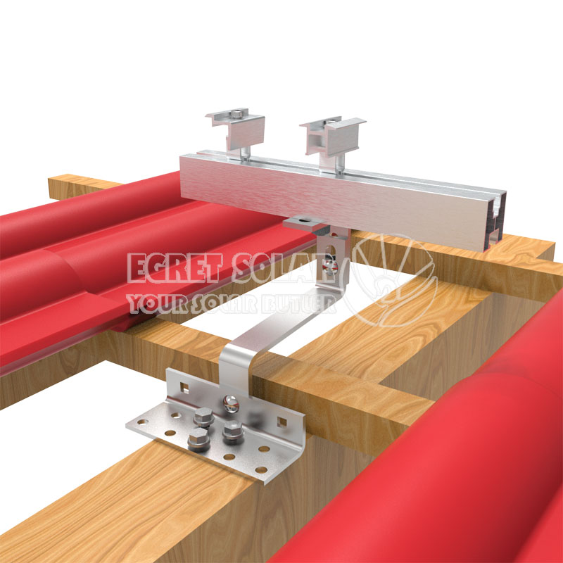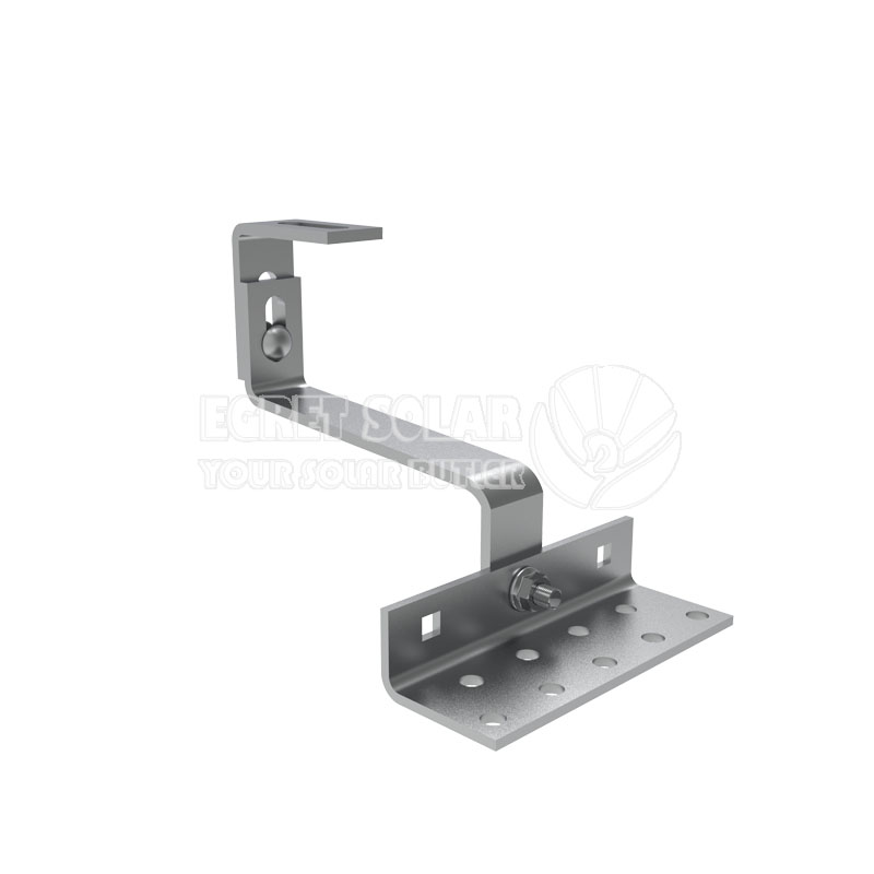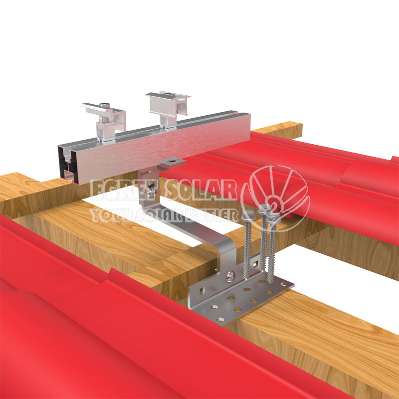 सोलर ॲडजस्टेबल टाइल रूफ हुक माउंटिंगचा सोलर हुकचा वापर उतार असलेल्या निवासी सपाट छतावर, बॅटन्ससह किंवा त्याशिवाय किंवा बॅटेन्सशिवाय वक्र टाइल छतावर सौर पॅनेल जोडण्यासाठी केला जातो. टाइल हुक A2 मटेरियलने बनवलेले आहेत आणि बहुसंख्य लोकप्रिय रेलसह कार्य करतात. उंची समायोजित करून वेगवेगळ्या टाइल छताचे प्रकार सामावून घेतले जाऊ शकतात.