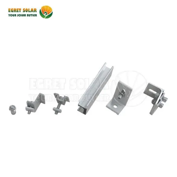 धातूच्या छतावर सौर पॅनेल स्थापित करण्यासाठी, त्यास एल फूट किंवा रेल क्लॅम्प्स, अॅल्युमिनियम रेल, रेल्वे कनेक्टर, एंड क्लॅम्प्स आणि मिड क्लॅम्प्स देखील आवश्यक आहेत.